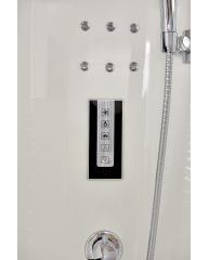 Questo nuovo modello con il nuovo pannello di controllo, la chiusura delle porte magnetica, le rifiniture in alluminio satinato, il vetro temperato ed oscurato da 6,0 mm anti infortunio, il doccione superiore, lo specchio, la cromoterapia luce a 7 colori Rgb, la colonna idromassaggio, i vetri serigrafati, il poggia sapone, sono alcune delle spettacolari funzionalità che contraddistinguono questa cabina.