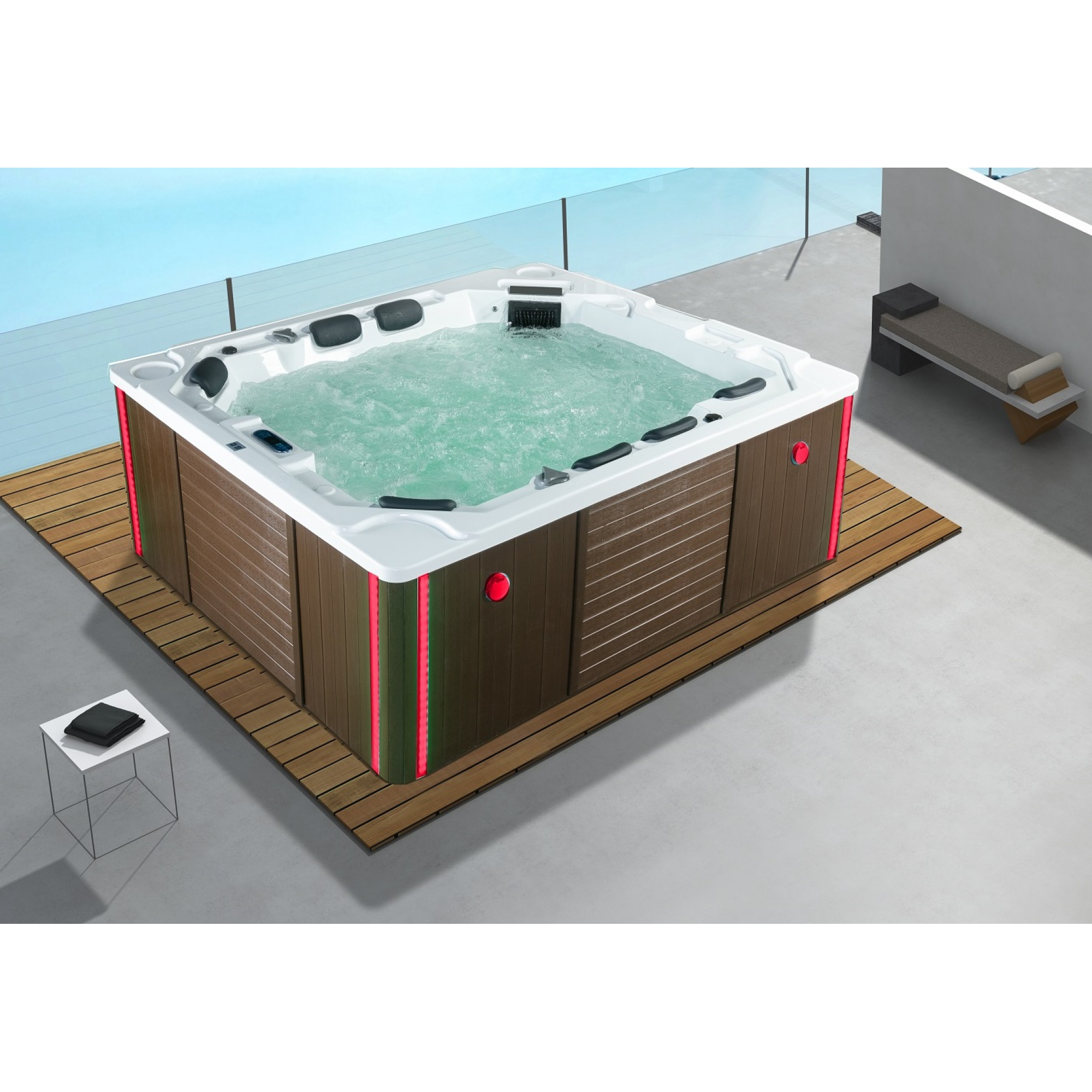 NUOVA SERIE LUXURY DI MINIPISCINA DA ESTERNO ORDINATA PER ALBERGHI E RESORT PIU' LUSSUOSI, UNA NUOVA SERIE MESSA IN VENDITA ANCHE PER I CLIENTI AL DETTAGLIO, VI PERMETTERÀ DI ACQUISTARE QUESTI NUOVI PRODOTTI A 4 STRATI ACRILICO PURO CON TELAIO IN ACCIAIO "GALVANIZZATO", CON ISOLAMENTO A PERMIMETRO IN POLIREUTANO ESPANSO (VEDI DETTAGLI), E CON UN NUMERO DI IDROGETTI PARI ALLE IDRO-SPA INSTALLATE NEI CENTRI BENESSERE, RENDENDO COSÌ QUESTA NUOVA GAMMA ECCELLENTE E CONVENIENTE, UN PIACERE ALLA PORTATA DI TUTTI GRAZIE AI PREZZI PARI ALL'INGROSSO CHE RIUSCIAMO AD APPLICARE.