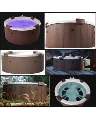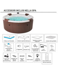 Vasca Minipiscina Idromassaggio SPA ROVA, dotata di Pc Oled - Striscia circolare Led - Pompa Acqua + Pompa Aria - Riscaldatore - Getti Direzionabili - Tappeto D'appoggio - Copertura e Materassino Termico - Skimmer - Antigelo, Tessuto Dwpc Real Legno resistente di alta qualità , da 182cm, con ben 138 getti.- super accessoriata - Strato Termico - AcrySkin - fino a 8 persone