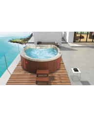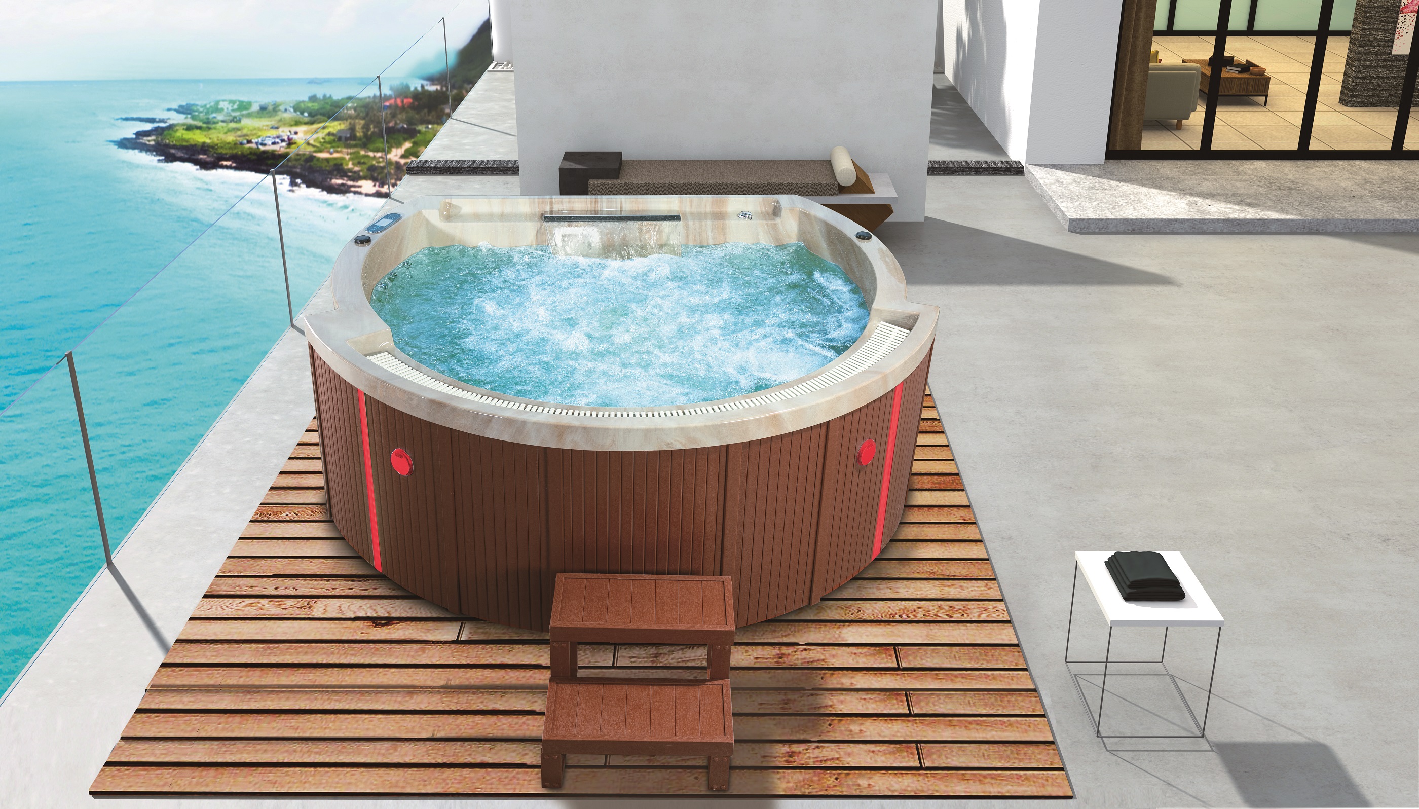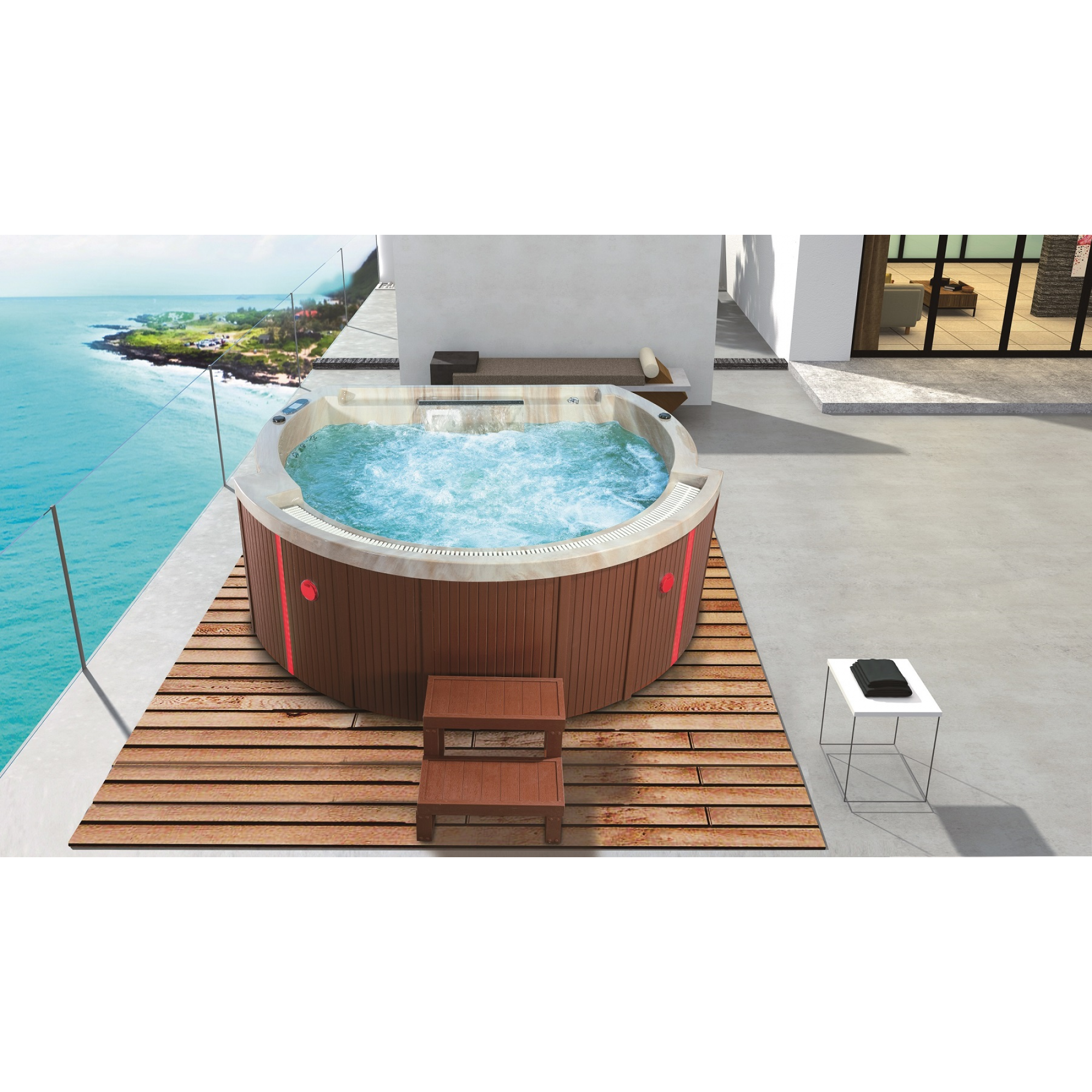 Splendida Vasca Idromassaggio Minipiscina da Esterno Rotonda, 233x200cm, Full Optional, 90 Idrogetti. Riscaldatore Hlw da 3,0kw Eco-Tech con sistema antigelo. Acrilico puro in colore marrone marmo) - nuovo pc trapezio tablet full touch - Bluetooth - Radio.- Ozono e sanificazione - 3 pompe di cui pompa ricircolo con cartuccia compresa - Led esterni angolare Design - Usb - Led livello acqua - Air Led getti illuminati Cromoterapia - Isolamento Termico - 90 getti totalmente in acciaio inossidabile - Doppio Altoparlante Sorround - Wi-Fi connector tablet / Smartphone (option) - Telo solare Termico (option) - Doppio Gradino antiscivolo (option).