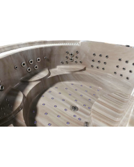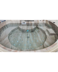 MINIPISCINA IDROMASSAGGIO LUXURY - VASCA IDROMASSAGGIO DA ESTERNO HALF ROUND / ROTONDA, SPA DA ESTERNO FULL OPTIONAL - TECH SPA SYSTEM RELAX IDROMASSAGGIO WELLNESS 233 CM X 200 CM X 103 CM PROFESSIONALE. FINO A 7 POSTAZIONI CIRCOLARI CON SEDUTA A DOPPIA PROFONDITA' E SKIMMER DESIGN A SFIORO PER UN COMPLETO RELAX E COMFORT.
