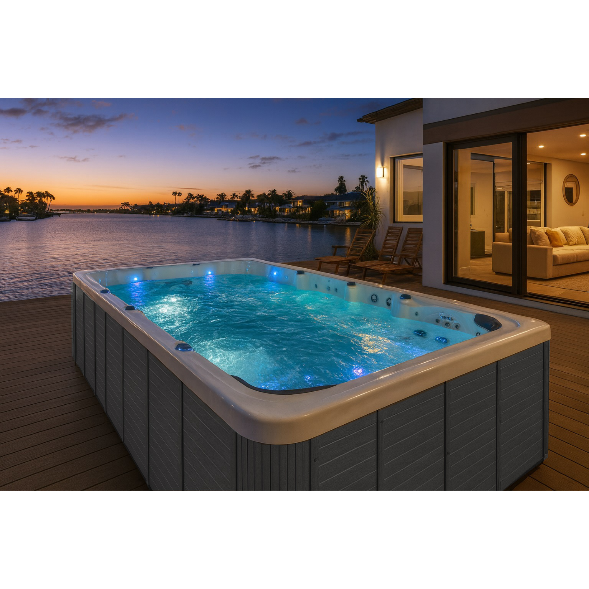NUOVA SERIE LUXURY DI MINIPISCINA DA ESTERNO CON FUNZIONE NUOTO CONTROCORRENTE