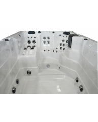 Minipiscina Idromssaggio Spa Lux Nuoto controccorrente Professionale, piscina Idromassaggio Design 7-9 posti, 450x225, 40 Idrogetti, Luci per Cromoterapia, Ozonoterapia e Rubinetto a Cascata. Fontana Araba. Dotata di riscaldatore Balboa. Touch id3 Trapezio Full Digitale. Riscaldamento elettronico dell'acqua. Pc Full Touch con Bluetooth con cassa fluttuante Ip68. Cascata Intagliata, Acrilico puro Aristech (Made In Usa) - nuovo pc full touch. Dettagli Optional riportati in inserzione.