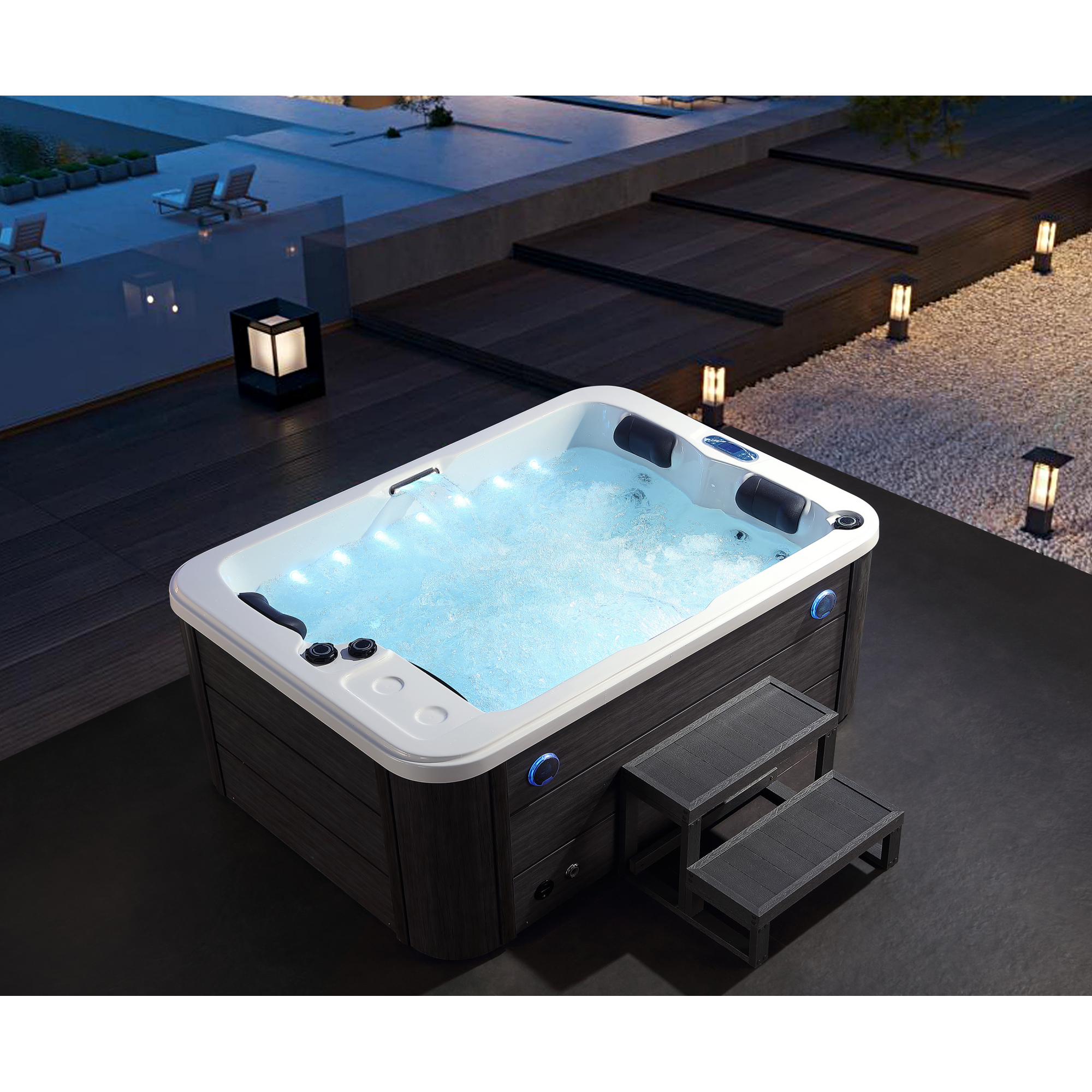 Splendida Vasca Idromassaggio Minipiscina da Esterno Quadrata, 180x130, Full Optional, 50 Idrogetti. Riscaldatore LX da 2,0kw Eco-Tech con sistema antigelo. Acrilico puro in colore bianco marmo) - nuovo pc tablet full touch - Bluetooth - Radio.- Ozono e sanificazione - 3 pompe di cui pompa ricircolo con cartuccia compresa - Led esterni angolare Design - Doppia Cascta led design - Led livello acqua - Air Led getti illuminati Cromoterapia - Isolamento Termico - 50 getti totalmente in acciaio inossidabile - Doppio Altoparlante Sorround - Poggia Bicchieri - Wi-Fi connector tablet / Smartphone (option) - Telo solare Termico (option) - Doppio Gradino antiscivolo (option).